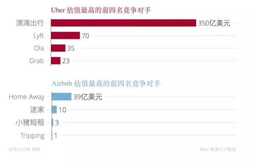 相比之下,Airbnb 沒有多少相同商業(yè)模式的競爭對手,而且規(guī)模很小。規(guī)模最大的一家 Home Away 也只有 39 億美元的估值。