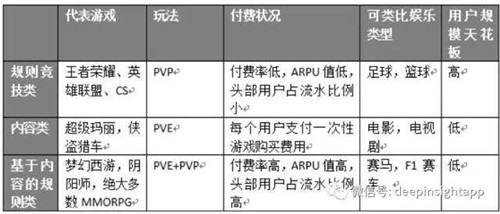 我們用一張圖表來說明,規(guī)則類、基于內(nèi)容的規(guī)則類和傳統(tǒng)的純內(nèi)容類游戲的差別。