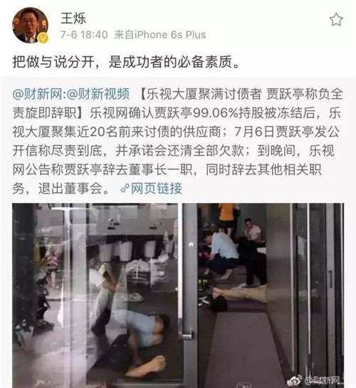 程時(shí)盛在朋友圈中寫到:相信大家因?qū)O正義先生和樂(lè)視的緋聞熱鬧了兩個(gè)小時(shí)。我們第一時(shí)間聯(lián)系了“美人獅”賬號(hào)并請(qǐng)其迅速刪除。該作者表示,“看到一個(gè)創(chuàng)業(yè)公司陷入困境,心有戚戚焉,沖動(dòng),想表示下支持”,于是進(jìn)行了“文學(xué)創(chuàng)作”。我們對(duì)作者的“善意”及配合刪除心懷感激。對(duì)于樂(lè)視遇到的挑戰(zhàn),賈總承諾會(huì)盡責(zé)到底,把欠款全還上,同時(shí)會(huì)把最好的產(chǎn)品奉獻(xiàn)給大家。感謝在這場(chǎng)驚濤駭浪中,依然堅(jiān)定支持我們的朋友們!