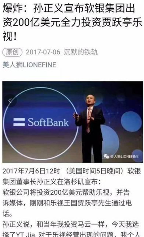 凡是相信“孫正義投資樂(lè)視200億美元”的人智商都需要充值。第一,軟銀自己因?yàn)榫拶Y收購(gòu)ARM資金鏈都很緊,哪來(lái)這么多現(xiàn)金?第二,這個(gè)世界上沒(méi)任何互聯(lián)網(wǎng)公司能拿到單筆超過(guò)50億美元的投資。第三,文章那么多驚嘆號(hào)……孫正義表示這個(gè)鍋我不背!一看就是個(gè)憤憤蹭熱點(diǎn)的,不值得為這種垃圾信息浪費(fèi)時(shí)間