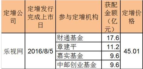 去年8月份初,樂(lè)視網(wǎng)發(fā)布定增公告,發(fā)行價(jià)45.01元,發(fā)行股份1.07億股,募資近48億元。以當(dāng)前最新收盤價(jià)30.68元計(jì)算,浮虧31.84%。