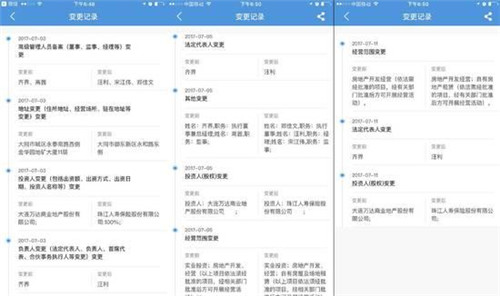 工商信息顯示,大同萬達(dá)房地產(chǎn)開發(fā)有限公司、南昌西湖萬達(dá)廣場投資有限公司和崇州萬達(dá)廣場置業(yè)有限公司依次于2017年7月3日、7月5日和7月11日發(fā)生了信息變更,單一股東由“大連萬達(dá)商業(yè)地產(chǎn)股份有限公司”變更為“珠江人壽保險(xiǎn)股份有限公司”,法人均由“齊界”變更為“汪利”,董監(jiān)高人員也全面“換血”。
