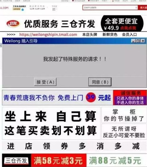 第二,緊追熱點(diǎn),借勢(shì)營(yíng)銷(xiāo)。去年iphone7面世時(shí),衛(wèi)龍竟然突發(fā)奇想的把天貓旗艦店的畫(huà)風(fēng)改造得同蘋(píng)果專(zhuān)賣(mài)店一樣,以至于網(wǎng)友紛紛以為進(jìn)了蘋(píng)果的店鋪。