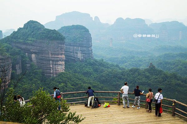 從山腳下乘索道上丹霞山主山之巔—寶珠峰,霧突突的天,在騰空而上的索道上縱目遙望置身于崇山峻嶺之中,不一會兒就到達(dá)寶珠峰頂,走到東部觀景臺(韶音亭)遠(yuǎn)眺,群峰疊翠,連綿起伏,“無限風(fēng)光在險峰”的詩情畫意,得到淋漓盡致的體現(xiàn),讓人感受到世界名山的神奇魅力。