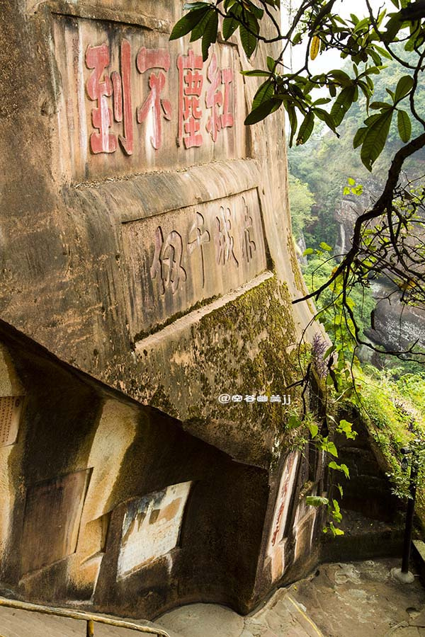 丹霞山的真味也是禪味。寂寂群山幽幽叢林,歷來是釋家修行隱逸之地。別傳寺寺前石上劈面就見“紅塵不到”四字佛偈,仿佛禪風(fēng)拂面,梵聲過耳,把萬丈紅塵都拋到身后去。