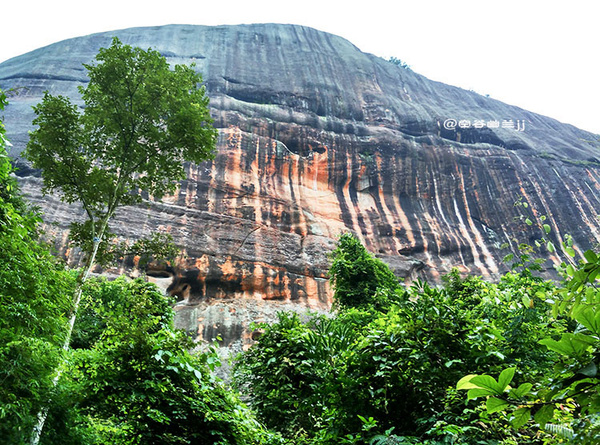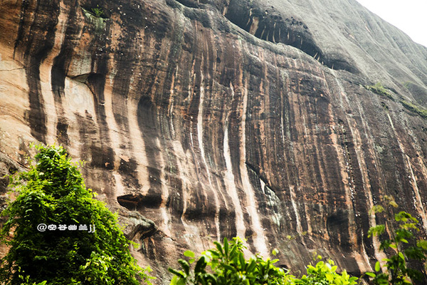 從通泰橋下來后,感覺時間還早就想去細(xì)美寨那邊看看是否可以上去。路過曬布石,諾大的山體,呈現(xiàn)出一道道的豎紋,好似染房在曬布。