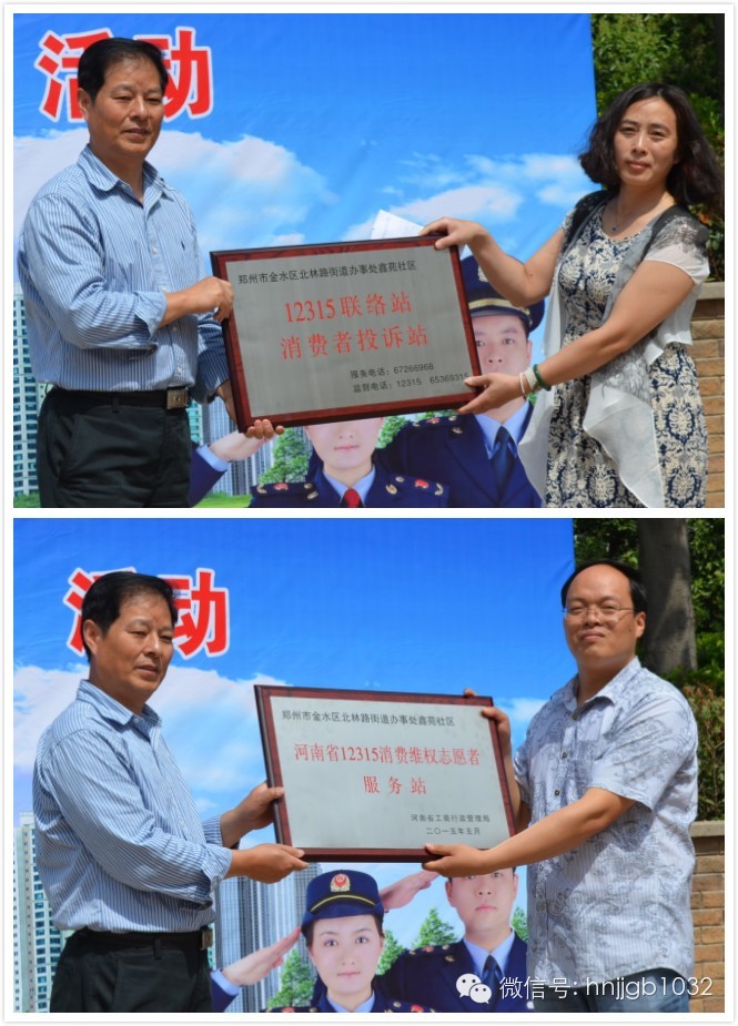 活動(dòng)現(xiàn)場(chǎng),省工商局趙中祥副局長(zhǎng)還向鑫苑社區(qū)頒發(fā)了“12315聯(lián)絡(luò)站、投訴站”、“消費(fèi)維權(quán)志愿者服務(wù)站”牌匾。