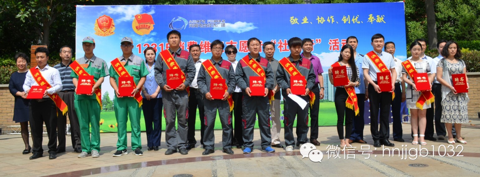 團(tuán)省委城市青年工作部殷世洲副部長(zhǎng)、河南經(jīng)濟(jì)廣播欣悅副總監(jiān)、省工商局相關(guān)處室領(lǐng)導(dǎo)為12位“志愿者”朋友們頒發(fā)了聘書(shū)。