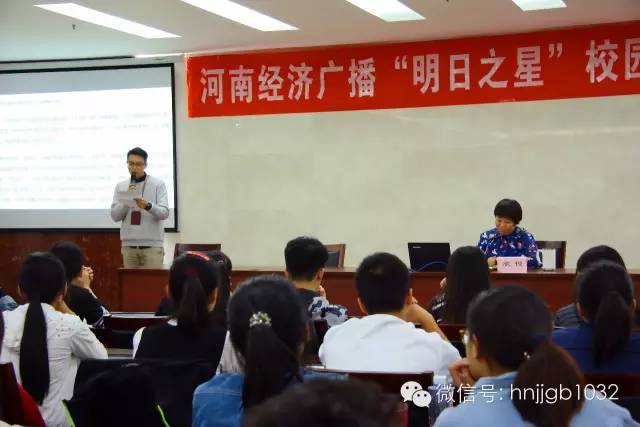 原來是河南經(jīng)濟(jì)廣播“明日之星”校園主持人大賽賽前培訓(xùn)現(xiàn)場呀!還沒到開講,房間里就已經(jīng)座無虛席。