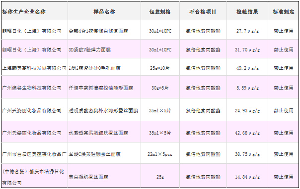 國家食品藥品監(jiān)管總局1日公布了對面膜類化妝品的監(jiān)督抽檢結果,8批次產品存在非法添加禁用物質、違規(guī)使用限用物質等問題。