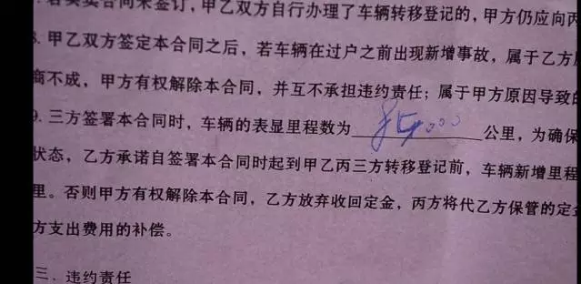 購車合同所顯示的公里數(shù)