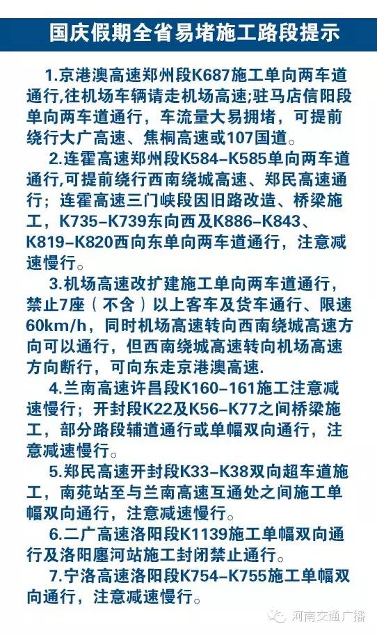 更多實(shí)時路況請關(guān)注“河南交通廣播”官方微博微信和“交廣領(lǐng)航”APP實(shí)時播報(bào)。