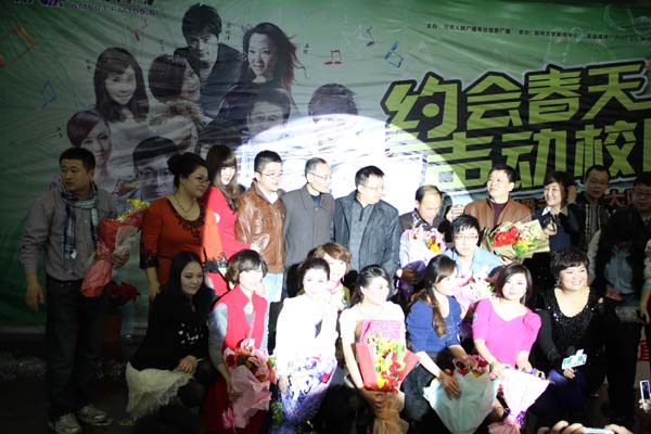 2012年3月23日晚上,鄭州大學新校區(qū)第三學術報告廳座無虛席,春潮涌動。來自河南人民廣播電臺信息廣播的十多位節(jié)目主持人,和鄭州大學500多名師生歡聚一堂,舉行“約會春天,聲動校園——河南電臺信息廣播鄭州大學聽友見面會”。