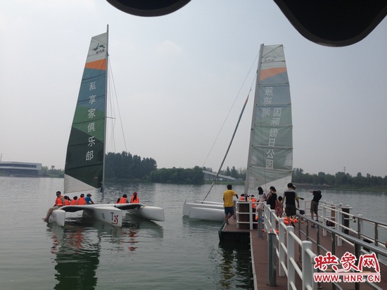 映象網(wǎng)訊 (記者 殷清卉)提起帆船,大家一般想起在大海里暢游的感覺,但是現(xiàn)在在我們鄭州也可以玩帆船了,7月27日,來自全省各地的300多名幸運(yùn)聽眾,便在河南電臺信息廣播《房產(chǎn)江湖》節(jié)目組的帶領(lǐng)下,在雁鳴湖國際假日公園過了一把帆船癮。