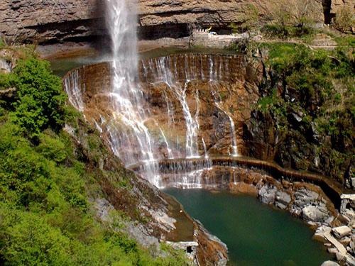 紅石河碧水橫溢、紅綠相映、色彩斑斕、明麗如畫,因海拔1100米被譽為“太行天河”。從紅石河畔俯瞰,山谷幽深、流水潺潺,河水順著光潔平整、錯落有致的紅石板流淌不息,直沖而下形成又一著名景點——天河大瀑布。紅石河的右畔是觀音洞,觀音洞里的泉水常年不斷、甘甜可口,用來泡茶增三分香,煮飯增加三分甜,現(xiàn)在敞開供應(yīng),保你一杯解風(fēng)塵,二杯去疲乏,三杯大汗落。 八里溝的山,八里溝的水,甚至八里溝的每一塊石頭都引起世界的好奇。景區(qū)森林覆蓋率達90%,如今,八里溝景區(qū)已經(jīng)成為國內(nèi)很多前衛(wèi)、時尚的游客非常向往的一個人間天堂、世外桃源,也是春季旅游的經(jīng)典線路。