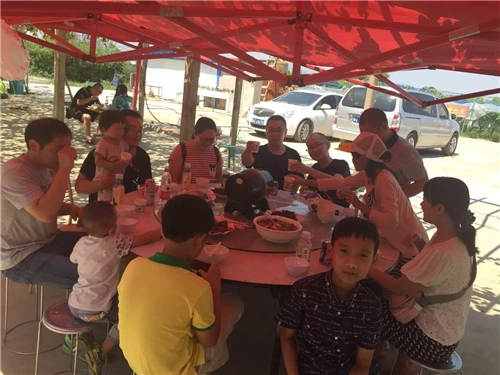采摘完畢,正好到了中午頭,大家一起聚餐暢飲!園主送出了自己珍愛(ài)的葡萄原漿酒助興!美酒,美食,美景,美哉!