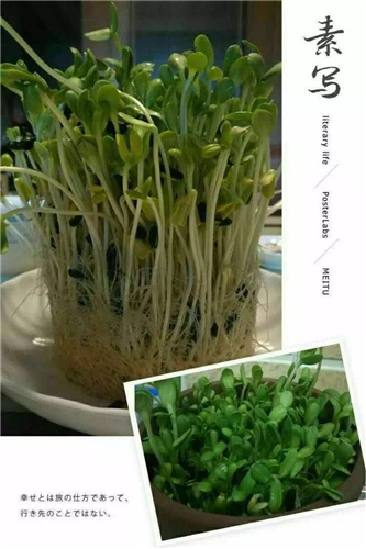 芽苗菜的生產(chǎn)周期短,7~10天就可收獲,而且生產(chǎn)場所不限,技術簡單易學,只需會播種、澆水、調(diào)盤簡單操作即可。