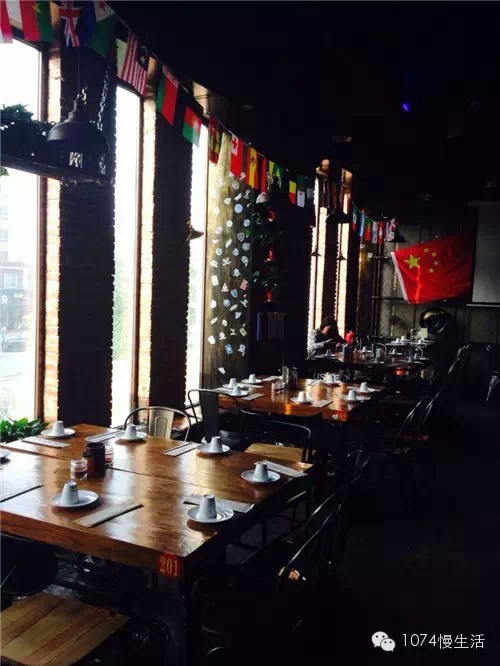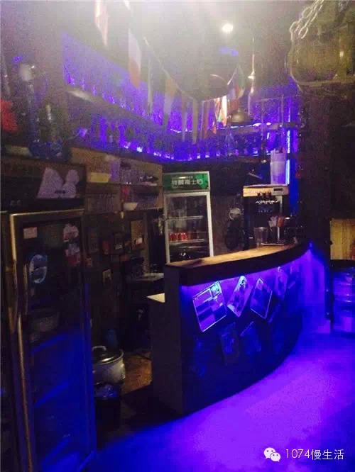 店內(nèi)的裝修風(fēng)格就有點搖滾重金屬的意思,果然,夜幕降臨,燈光一開,立馬就有酒吧的氛圍了。