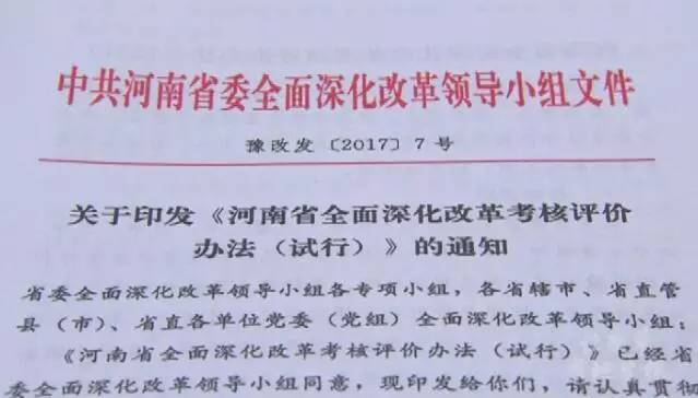 今年7月《河南省全面深化改革考核評(píng)價(jià)辦法》正式出臺(tái),表揚(yáng)先進(jìn)、懲戒落后、追效問責(zé),考核評(píng)價(jià)辦法成為一支有力的“指揮棒”。