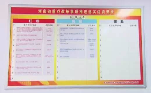 這張省委改革領(lǐng)導(dǎo)小組辦公室內(nèi)的“紅青黑”榜單,生動(dòng)記錄了各地改革任務(wù)的月度推進(jìn)落實(shí)情況。