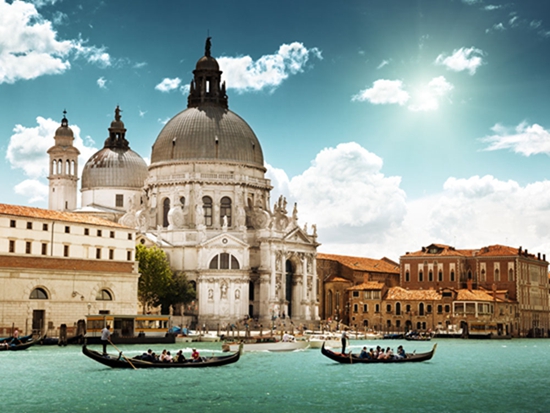 貢多拉船夫緩緩地搖櫓