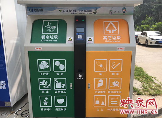 映象網(wǎng)訊(記者 王邵怡 實(shí)習(xí)生 戴曉琳 文/圖)在鄭州緯一路和經(jīng)六路交叉口的一個(gè)小區(qū)內(nèi),多臺(tái)有垃圾回收標(biāo)志的嶄新機(jī)器吸引了來(lái)回居民的目光。據(jù)悉,這些機(jī)器是鄭州市首批投放試用的智能垃圾分類箱。