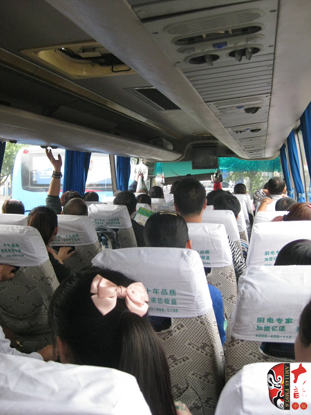 坐了一天一夜的火車 終于來(lái)到成都 早已經(jīng)有兩輛大巴車等著大家了
