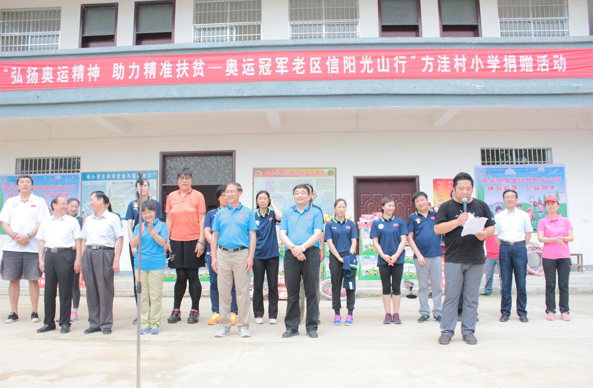 6月20日上午,由國家體育總局人力資源開發(fā)中心、河南省體育局和信陽市人民政府主辦,信陽市體育局、信陽市文明辦、信陽市扶貧辦和光山縣人民政府承辦的“弘揚(yáng)奧運(yùn)精神,助力精準(zhǔn)扶貧——奧運(yùn)冠軍老區(qū)信陽光山行”活動(dòng)啟動(dòng)儀式在光山文殊一中隆重舉行。