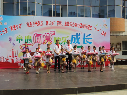 5月31日,二七區(qū) “星級美德少年”、“認星爭優(yōu)”活動優(yōu)秀學校、優(yōu)秀教師、優(yōu)秀家長、“十佳少先大隊”、“十佳少先隊干”、 “十佳少先隊輔導員”、“百佳少先隊員”頒獎儀式、蜜蜂張辦事處溫暖行暨慶“六一”活動在鄭州市二七區(qū)京廣路小學舉行。