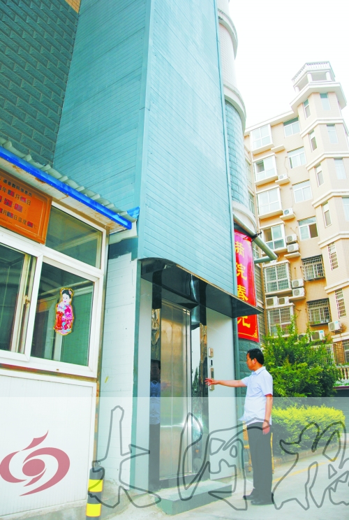 昨日傍晚6時許,記者在新密市一小區(qū)3號樓前見到了這部依樓而建直達頂樓7樓的電梯。小區(qū)物業(yè)部的韓經(jīng)理說,這部電梯是去年10月份建成的,僅供7樓住戶李先生家使用。李先生在煤礦工作,家中的經(jīng)濟條件不錯。