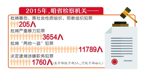 去年,我省檢察機(jī)關(guān)決定逮捕涉嫌職務(wù)犯罪1760人,其中部級(jí)干部3人,廳級(jí)干部48人。此外,在打擊非法集資、促進(jìn)依法行政、規(guī)范司法方面也取得成效。