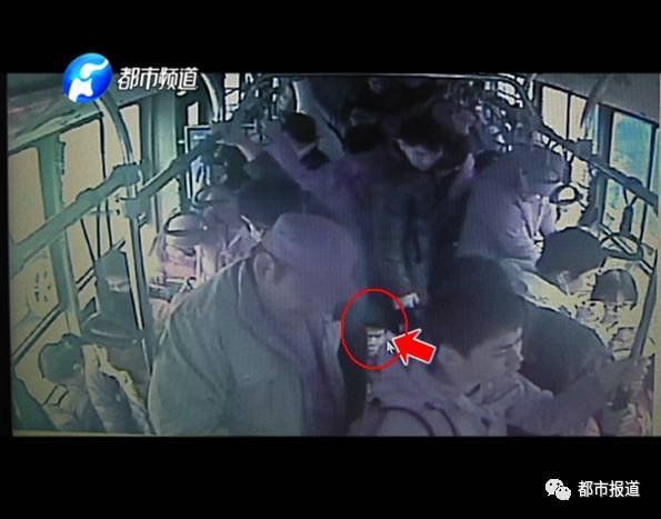 這是發(fā)生在鄭州市B12路公交車(chē)上的監(jiān)控視頻畫(huà)面,上午十點(diǎn)多,車(chē)廂內(nèi)的乘客很多。