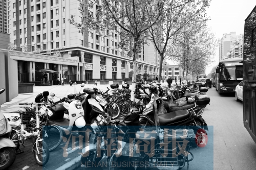 家住鄭州經(jīng)三路與廣電南路交叉口附近嘉辰麗景苑小區(qū)的李先生一直把電動車停放在小區(qū)大門外的人行道上。原因是小區(qū)非機(jī)動車停放點兒沒建好。而停放點建成后,物業(yè)要收費。李先生等業(yè)主因此事與物業(yè)產(chǎn)生了分歧。