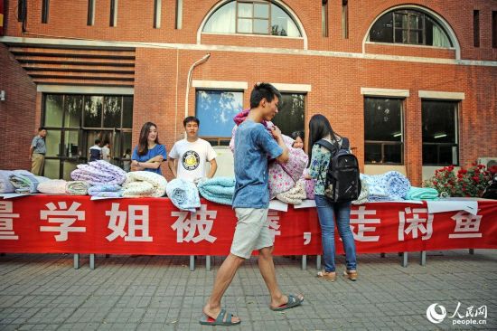 2015年05月31日,北京,清華大學(xué)大三學(xué)生小龍在宿舍樓旁擺起了攤位,一則“大量畢業(yè)學(xué)姐被褥”的廣告語,引發(fā)大量學(xué)子圍觀。