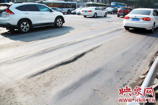 映象網訊(記者 王濤 文/圖)在經過多日氣溫“燒烤”模式之下,鄭州市區(qū)多條馬路也扛不住了,路面變成了“波浪形”。