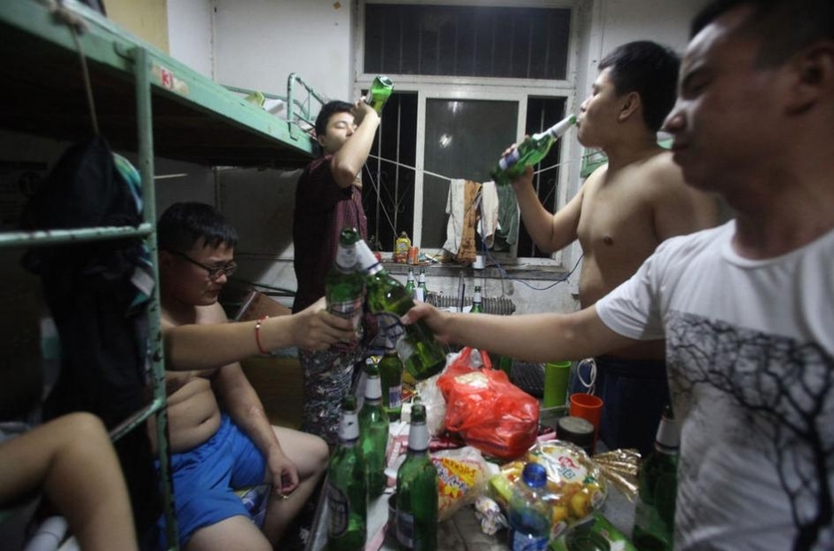 2013年6月24日,山東濟(jì)南,在山東師范大學(xué)宿舍樓里,舍友們緊緊抱在一起不舍離去。因?yàn)檫@是他們大學(xué)生生涯的最后一夜。當(dāng)晚,大學(xué)生們無(wú)法入眠,酒杯聲、哭聲交織在整個(gè)宿舍樓。第二天起床就要背著行囊啟程了,此時(shí)此刻發(fā)現(xiàn)校園生活是多么珍貴,四年大學(xué)時(shí)光轉(zhuǎn)瞬即逝,不得不各奔東西,像蒲公英一樣飄向社會(huì)每個(gè)角落,尋求屬于自己的新舞臺(tái)。