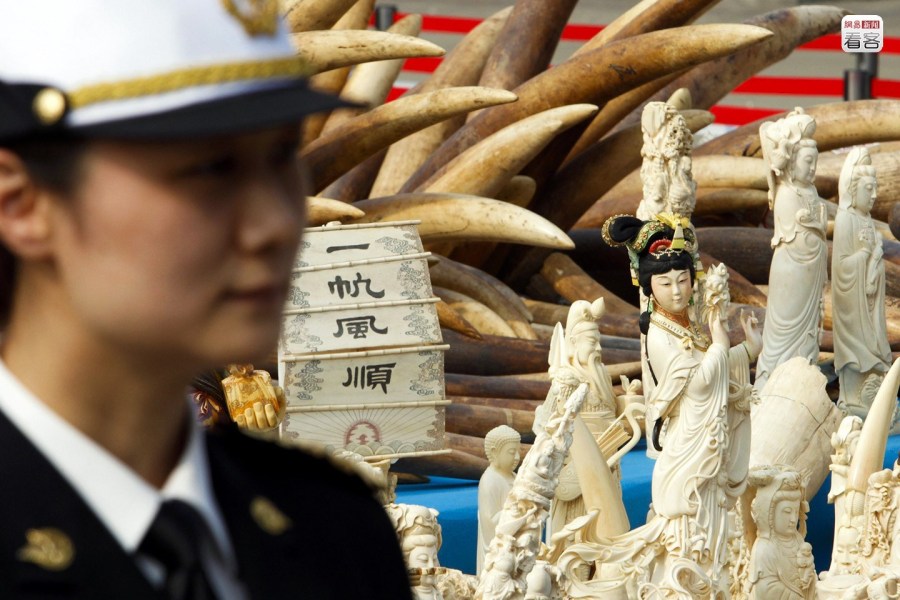 2014年1月6日,廣東東莞,中國(guó)國(guó)家林業(yè)局和海關(guān)總署集中銷毀了近年來(lái)在執(zhí)法行動(dòng)中查沒(méi)的6.1噸象牙及其制品,是中國(guó)首次公開(kāi)銷毀象牙。CFP