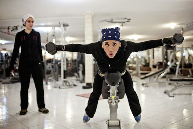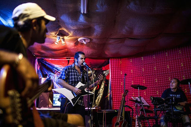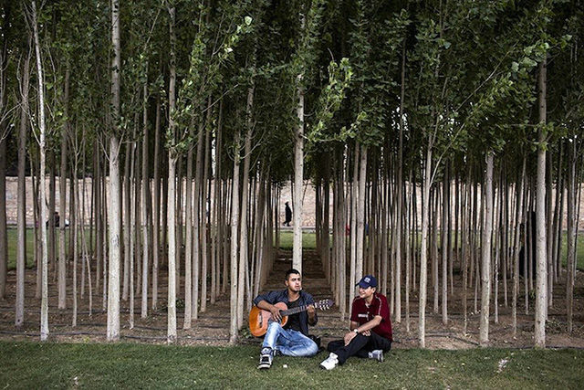 盡管照片中的人顯得很輕松,但對拍攝照片的Fatemi來說卻十分不易。這個攝影師花了數(shù)月才被允許進入女性健身房、發(fā)廊等。很多人不愿意被拍到臉,怕被認出來;很多人取消了預約,怕因此丟了工作。雖然存在著種種困難,F(xiàn)atemi還是取得了驚人的成果,為伊朗和外界拍攝了包羅萬象的精美照片。圖為私人搖滾音樂會。搖滾音樂在這里是被禁止的,所以這類表演一般都很隱秘的。