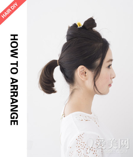 step2:留出頭頂的頭發(fā)將腦后的頭發(fā)綁成馬尾。