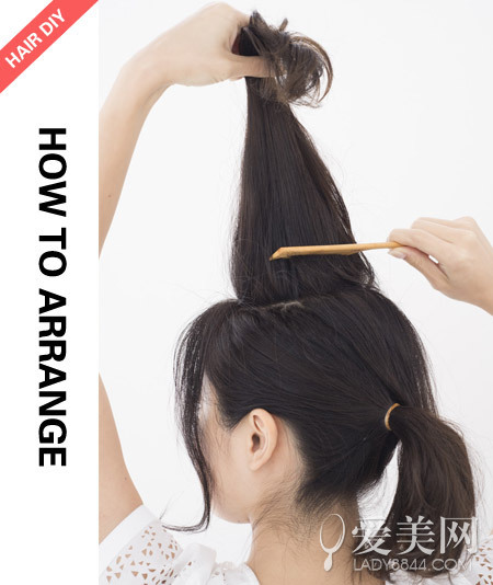 step3:用發(fā)飾固定后將頭頂的頭發(fā)拉扯出蓬松感。