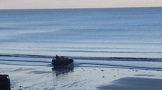 據(jù)《每日郵報(bào)》7月27日?qǐng)?bào)道,近日,在英國(guó)康沃爾郡一間名為“The Hidden Hut”的海邊餐廳里,數(shù)百名正在享用大餐的顧客目睹了一輛吉普車在海上化身成快艇高速行駛的全過(guò)程?!薄 ?jù)其他目擊者反映,當(dāng)吉普車在海面上像快艇一樣高速行駛的時(shí)候,全場(chǎng)驚呆了,接著爆發(fā)出歡呼聲和掌聲。