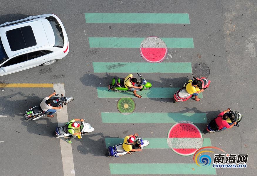 三亞街頭現(xiàn)"水果"斑馬線 這個(gè)造型好Q!