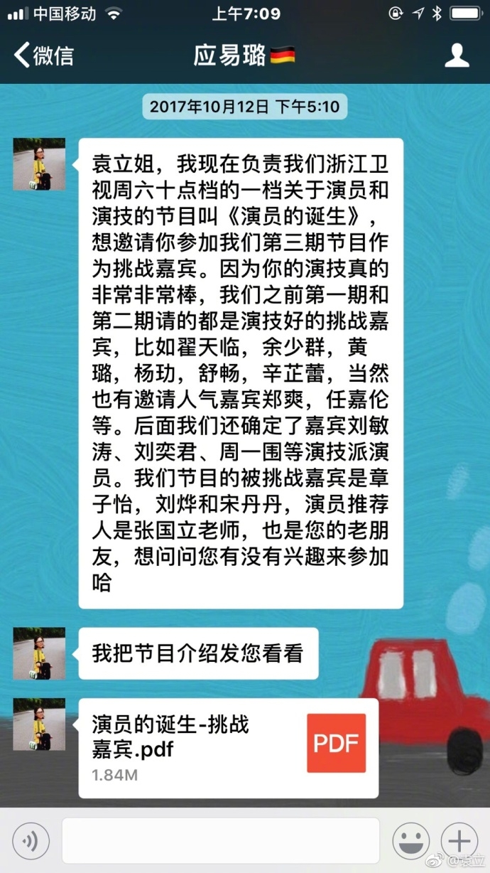 《演員的誕生》昨天播出袁立和張彤PK演技的一集,最后三個(gè)導(dǎo)師沒(méi)投袁立淘汰。袁立昨晚到今天凌晨連發(fā)多條微博,并曬出與節(jié)目組工作人員的截圖。指責(zé)節(jié)目組欺瞞她,不簽合同,不給勞務(wù)費(fèi),。