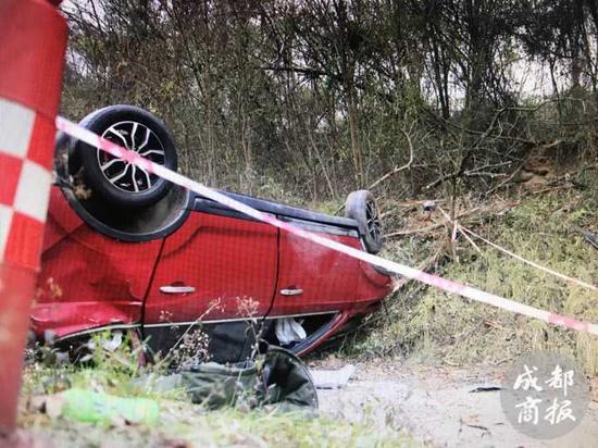 民警介紹,車(chē)輛在墜崖時(shí)時(shí)速非???,墜落時(shí)水平距離至墜落點(diǎn)有80米左右,堡坎垂直高度達(dá)20米。幸好事發(fā)地點(diǎn)為斜坡式堡坎,坡上有茂密的植被緩沖,二人才得以保命。