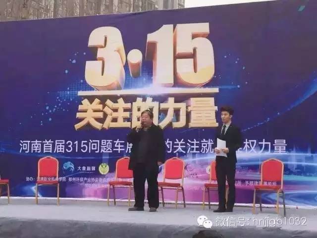 3月15日上午,河南首屆315問題車展鄭州市惠濟(jì)區(qū)三全路與長興路交叉口的鄭州裕華廣場舉辦,河南經(jīng)濟(jì)廣播聯(lián)合大象融媒民生頻道、河南省消費者協(xié)會、騰訊大豫網(wǎng),以及河南職業(yè)機(jī)電學(xué)院、鄭州環(huán)保產(chǎn)業(yè)協(xié)會室內(nèi)環(huán)境檢測治理服務(wù)中心、河南中小企業(yè)手機(jī)臺、河南至誠機(jī)動車司法鑒定所、予順律師事務(wù)所等多家單位聯(lián)合舉辦了“關(guān)注的力量——河南首屆315問題車展”。