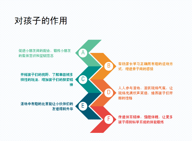 “趣味親子運(yùn)動(dòng)趴”根據(jù)孩子年齡不同設(shè)置指標(biāo),由家長(zhǎng)和孩子共同參與、相互協(xié)作完成,是一次從耐力到動(dòng)手能力、反應(yīng)力到創(chuàng)造力,速度與平衡全面考量的一系列親子活動(dòng),從“歡樂(lè)親子跑”到“趣味體能大沖關(guān)”,不但提高幼兒的活動(dòng)技能,開(kāi)拓孩子們的視野,增加孩子們的探索精神,增強(qiáng)少年兒童的身體素質(zhì)的,又寓教于樂(lè),有利于孩子們身心健康成長(zhǎng),同時(shí)讓家長(zhǎng)們也了解正確而有趣的運(yùn)動(dòng)方式,更好的增進(jìn)父母與孩子間感情。