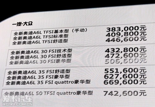 【全新奧迪A6L價(jià)格發(fā)布】