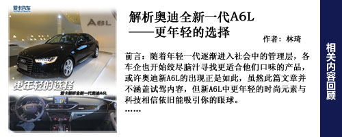 編輯點(diǎn)評(píng):新一代奧迪A6L外觀更加年輕,目標(biāo)用戶群會(huì)進(jìn)一步下探,而A6L更大的改變?cè)谂c內(nèi)飾上,更寬敞的空間,更豪華的內(nèi)飾,更加具有科技含量的電子配置。動(dòng)力總成和四驅(qū)系統(tǒng)上變化較少,好在奧迪A6L的用戶群對(duì)此并不十分關(guān)心。頂著“第一官車”的光環(huán),有政府采購(gòu)做保障,奧迪A6L并不愁銷路,不過(guò)奧迪希望能逐步降低對(duì)公務(wù)市場(chǎng)的依賴,以降低采購(gòu)政策改變所帶來(lái)的風(fēng)險(xiǎn)。