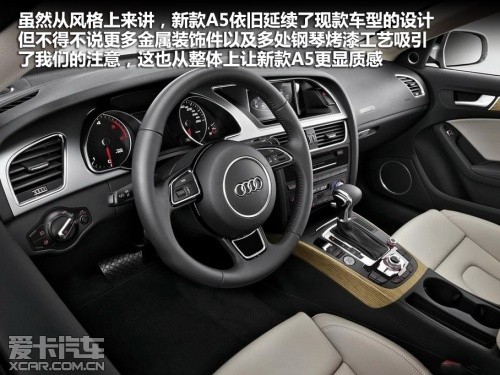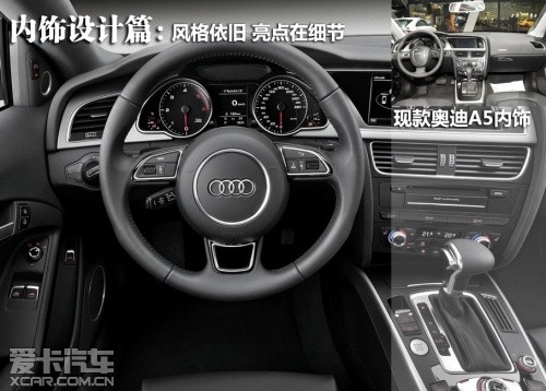 雖然新款奧迪A5的中控臺布局沒有進行新的設計,但是新車采用了全新設計的儀表盤,一體化設計的儀表與內(nèi)飾的融合更加緊密。另外老款平庸的變速箱擋桿被更換,新的擋桿很容易激起我們的駕駛沖動,另外新車在MMI操作面板的很多細節(jié)上也有變化。