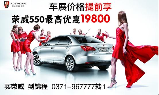 近日,編者從河南錦程榮威了解到,榮威車(chē)展價(jià)格提前享,榮威550最高直降1.98萬(wàn)元。購(gòu)榮威車(chē)的朋友們不用再擠車(chē)展,在優(yōu)雅的環(huán)境中提前享受有車(chē)生活,河南錦程榮威為廣大車(chē)友朋友們提供最實(shí)惠最保障的購(gòu)車(chē)政策。買(mǎi)榮威汽車(chē),到河南錦程看看再?zèng)Q定,搶購(gòu)熱線(xiàn):0371—967777轉(zhuǎn)1.
